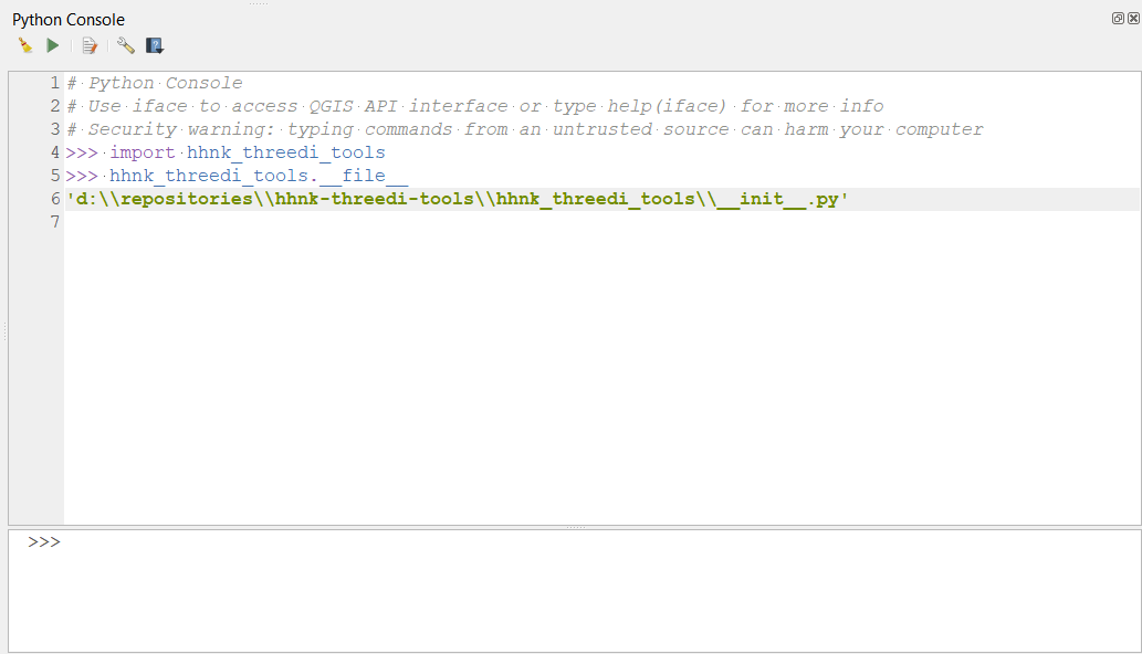 Je krijgt nu het pad naar de __init__.py in de lokale clone van hhnk_threedi_tools terug krijgen: